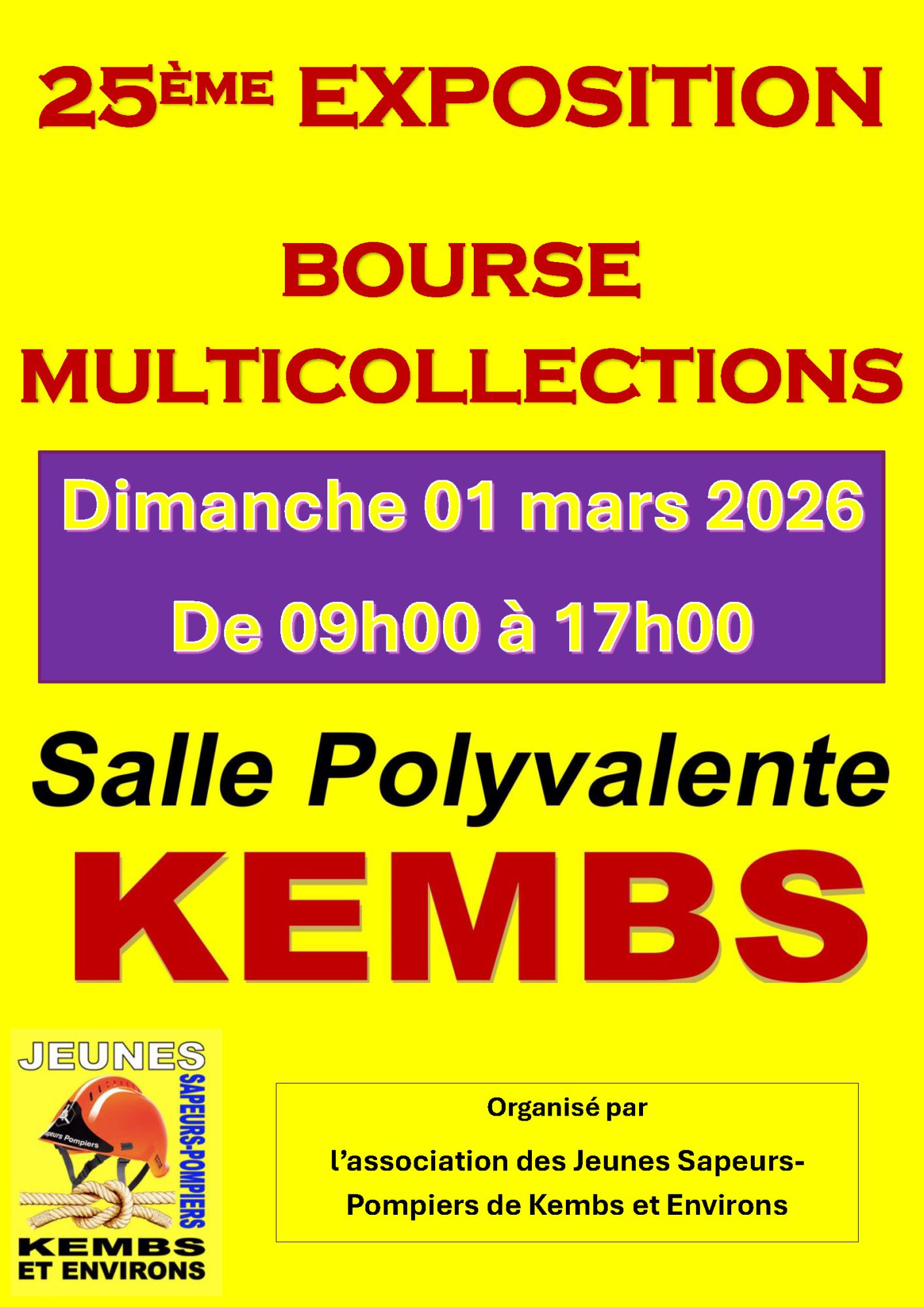 Les Jeunes Sapeurs-Pompiers de Kembs & Environs vous donnent rendez-vous le dimanche 1er mars, de 9h00 à 17h00 à la salle polyvalente, pour la 25e édition de leur exposition bourse multicollections minéraux et bien-être.
