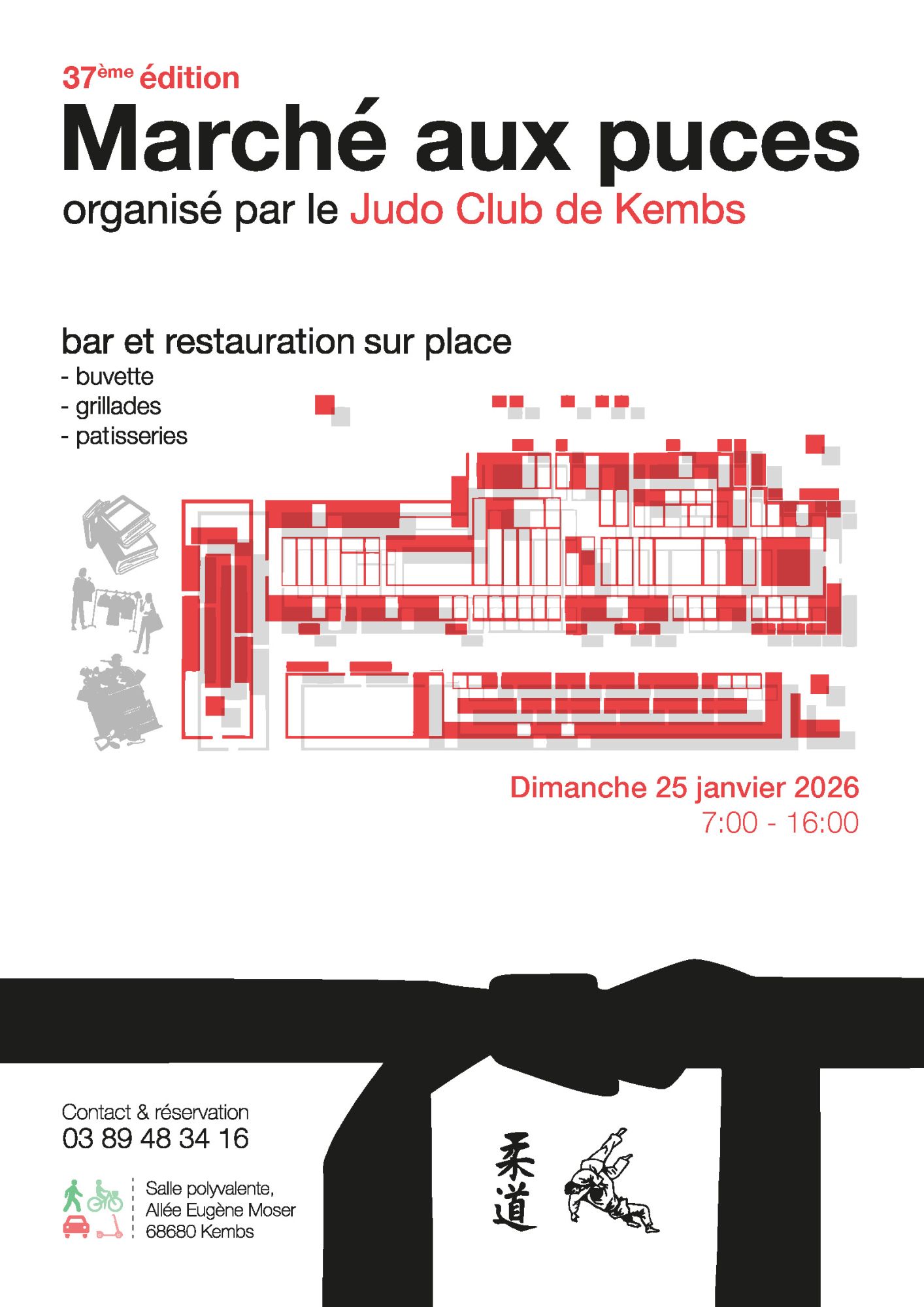 Rendez-vous à la 37e édition du marché aux puces organisé par le Judo Club de Kembs le dimanche 25 janvier 2026 de 7h à 16h à la salle polyvalente de Kembs.